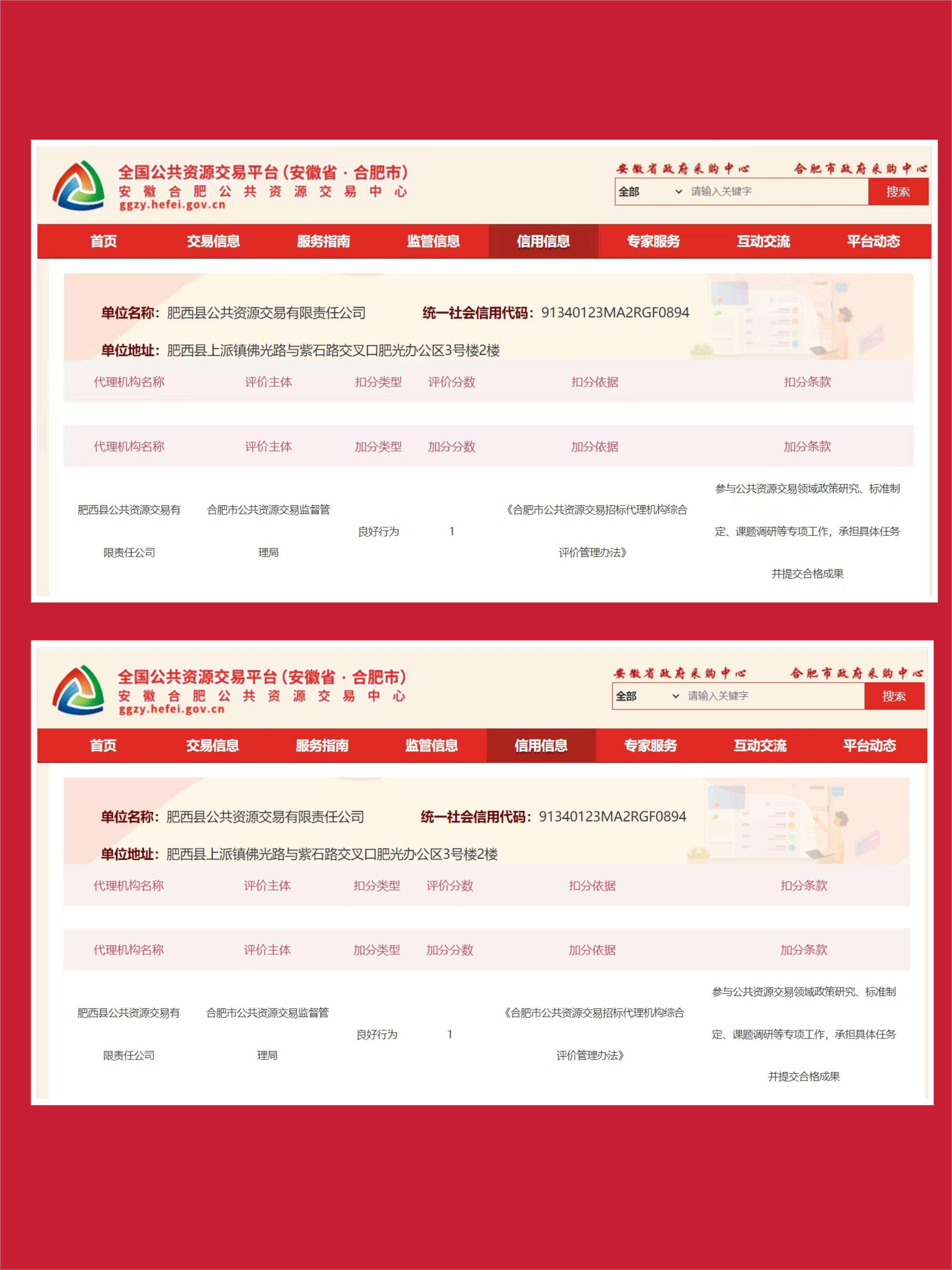 近日,合肥市公布2025 年度公共资源交易系统第四季度代理机构信用评价结果,肥西县公共资源交易有限责任公司(下称 “县交易公司”)以优异成绩再次斩获AAA 等级。